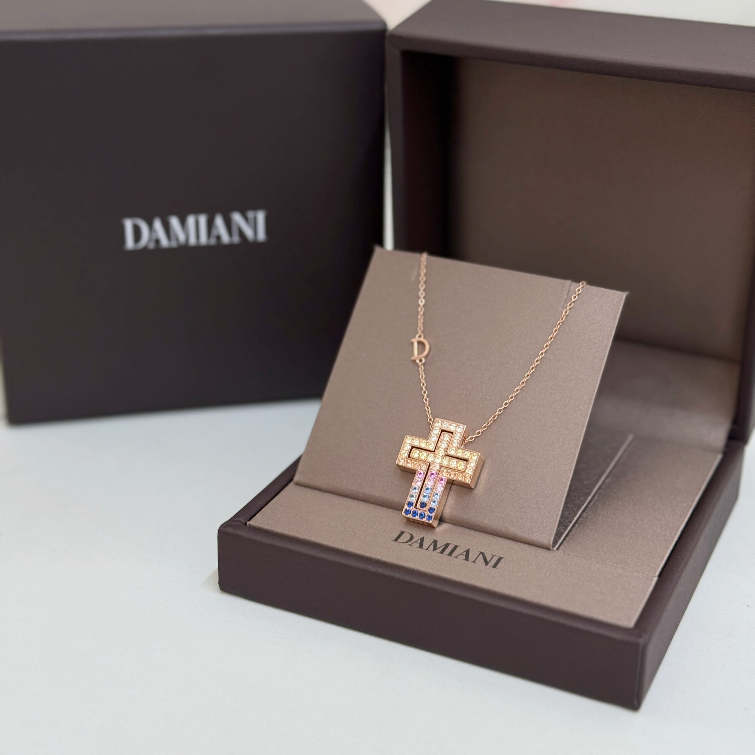 A feast of flowing colors, crafted from premium rainbow-colored gemstones: The pendant’s core is set with high-quality rainbow-colored gemstones, transitioning naturally from soft pink and light orange to clear blue and pale purple. Each gemstone undergoes clarity screening and fire testing, ensuring crystal clarity without inclusions. Under light refraction, it displays a “flowing rainbow” luster—swaying with movement as you walk, as if capturing fragments of the galaxy around your neck. With a hardness of 8.5, the gemstones are wear-resistant and scratch-resistant, maintaining their brilliance even with everyday wear, perfectly echoing the pursuit of “eternal radiance” during the Belle Époque era. Double Symbol Design: Cross + Letter D, a Connection of Protection and Exclusive Emotions